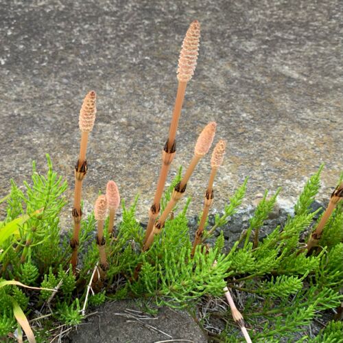 栽培用にスギナの胞子がほしいので探しに行ってきた。明るい川べりに毎年生えてくる。 ツクシがニョキニョキ生えている。ツクシは無駄の無い完成したフォルムいう感じがする。 数本摘み取り、播く前にスマホ用マクロレンズで観察した。 穂の六角形の内側に緑…