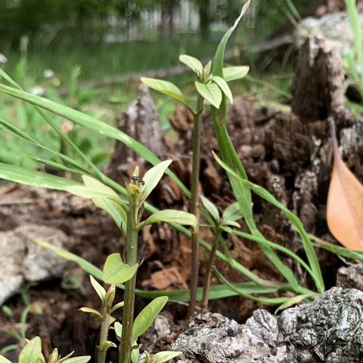 支線の根もとにはなぜか植物が生えていることが多い。これから植物を探して歩くときは支線の根もとも意識することにしよう。