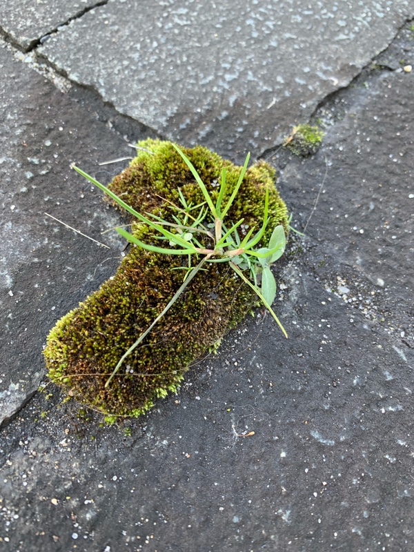 千葉県立中央博物館に行ってきました。昨日の雨のおかげで路上の苔も潤っています。