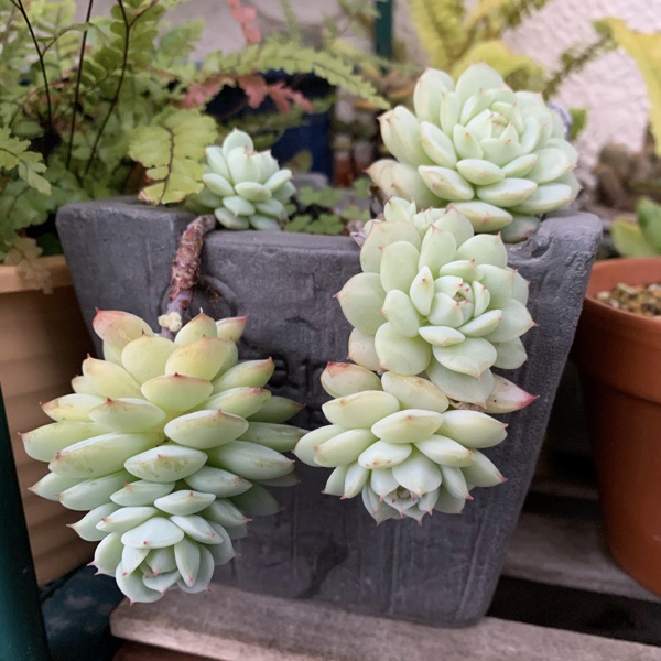 たわわに実っているのはエケベリア″静夜″です。春に植え替えられなかったので土が劣化し、水をあげても弾かれてしまいます。にも関わらず葉の色艶は良好です。