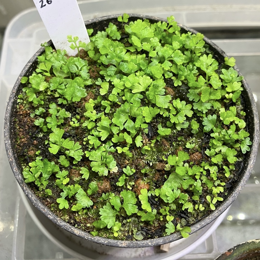 2023-07-22 さらば前葉体 シダ 今日、関東で梅雨が明けた。明日から水やりが忙しくなる。 胞子から育てたイヌワラビはすっかり大きくなった。 表土を覆っていた前葉体はもうほとんどいない。 胞子体が立ち上がっている。原野が林へ遷移するを見ているかのようだった。