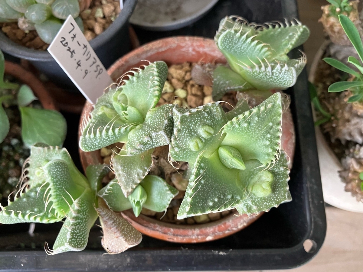 上からフォーカリア(種類不明)、ハオルチア・オブツーサ、ハオルチア・ピグマエア。